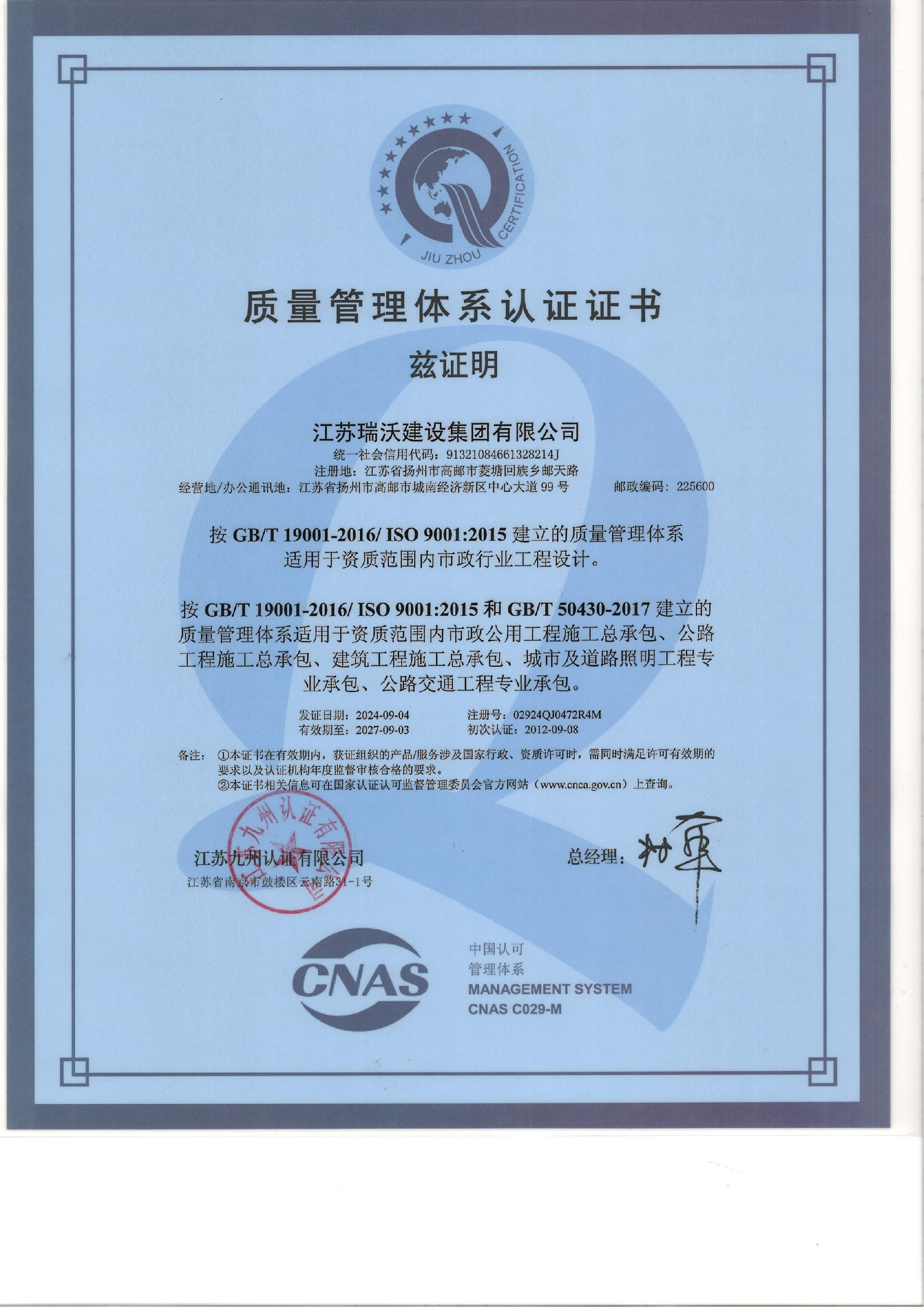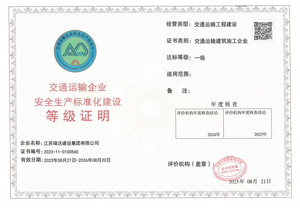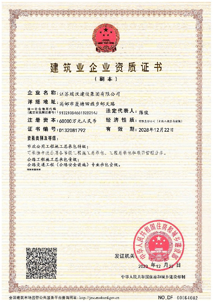 江蘇瑞沃建設(shè)集團(tuán)有限公司成立于2007年,是一家以市政、交通工程建設(shè)為主導(dǎo),集房屋建筑、交通安全設(shè)施、城市道路照明工程、電力工程、隧道工程、航道工程及投融資為一體的綜合性企業(yè)。企業(yè)注冊資本60000萬元,現(xiàn)有各類技術(shù)人員580人,其中中、高級以上人員498人,注冊類人員268人,一、二級建造師166人。公司榮獲“江蘇省建筑業(yè)優(yōu)秀企業(yè)”、“江蘇省五一勞動(dòng)獎(jiǎng)狀”,連續(xù)多年被評為“揚(yáng)州市先進(jìn)企業(yè)”、“江蘇省建筑業(yè)百強(qiáng)企業(yè)”,連續(xù)八年蟬聯(lián)百強(qiáng)企業(yè)基礎(chǔ)設(shè)施類第一名。